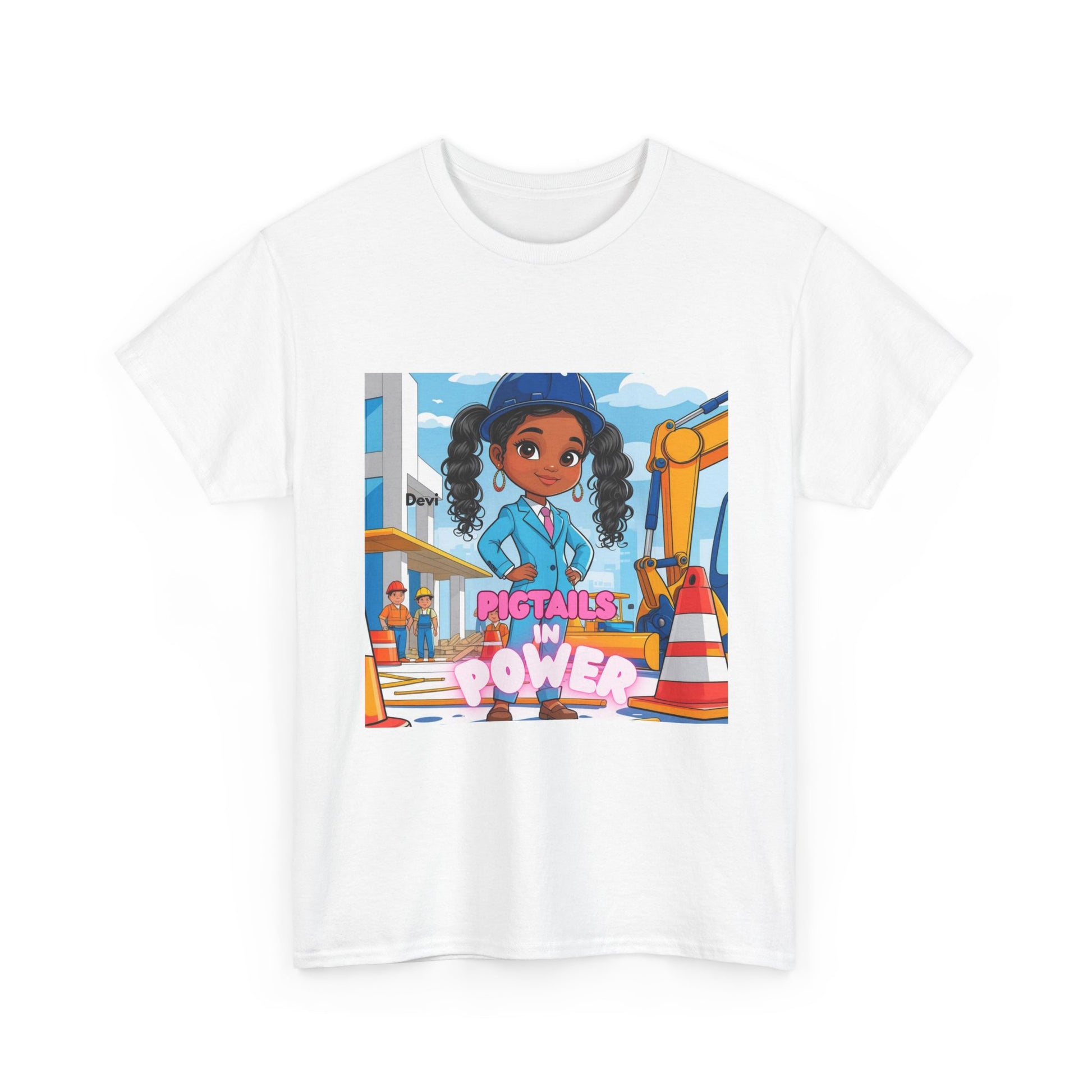 Womens T-Shirt — Pigtails in Power Graphic Tee (Girl Engineer Construction Theme)
